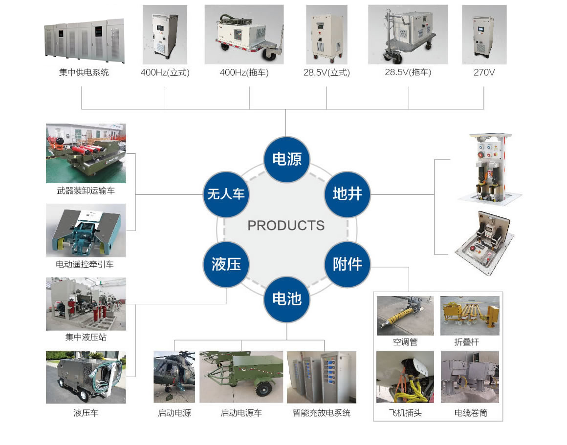 公司設立地井、電源、無人車三大產品交付線,與營銷體系配合全面用戶,結合市場需求進行產品開發(fā)。目前已形成綜合地井、飛機地面電源、無人車、液壓及氣密測試、啟動電池及充放電管理,各類配套附件等六大類產品。
